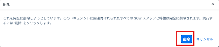 ②次のウインドウ(下図)にて「削除」を押下