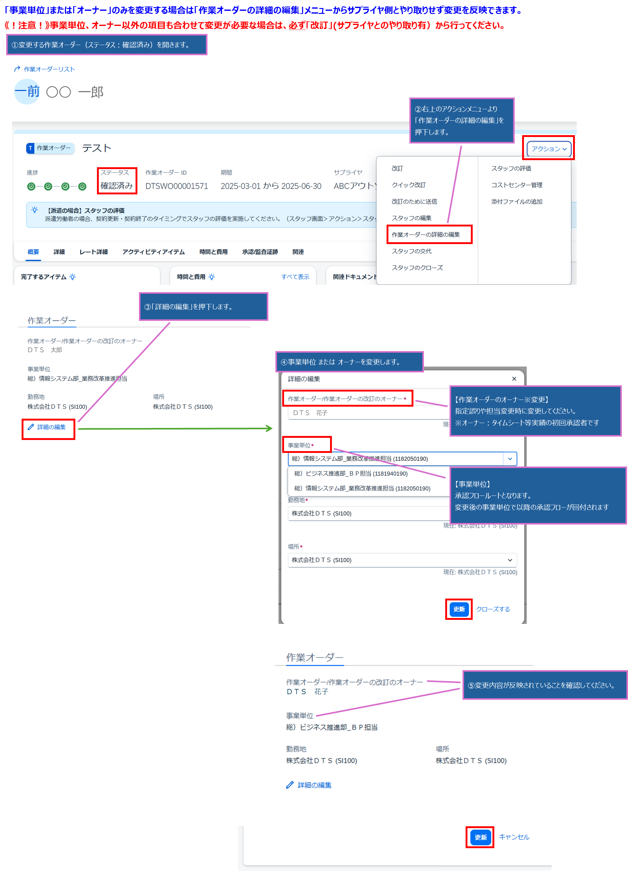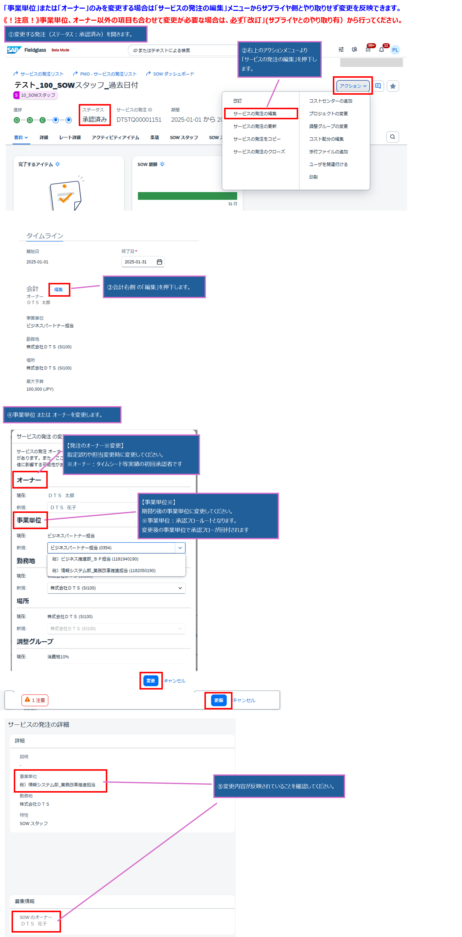 【Fieldglass】事業単位 または オーナー のみを変更したい
