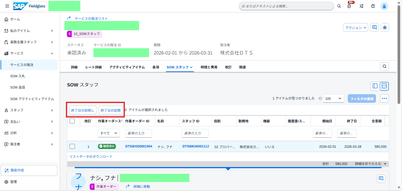 【Fieldglass】発注済SOWスタッフの終了日を変更したい